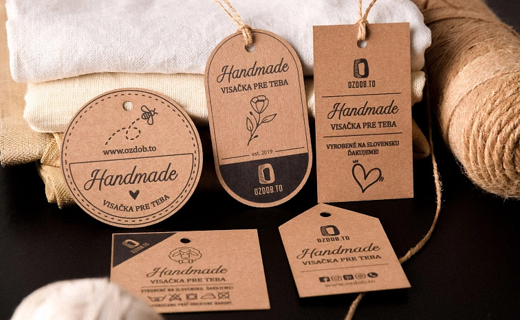 Štítok je niečo, čo sa pripevňuje priamo na výrobok. Môže byť našitý, prinitovaný alebo prilepený – jednoducho je súčasťou produktu. Na ňom býva logo, nápis „handmade“ alebo meno vašej značky.