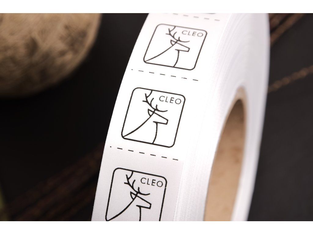 Textilné štítky vyrábame z bielej stuhy o šírke 3 cm, potláčame ich čiernou farbou, čo zabezpečuje dobrý kontrast a čitateľnosť textu alebo grafiky. Satén je všeobecne odolný materiál, ktorý sa neopotrebováva rýchlo, čo znamená, že štítky si zachovávajú svoj vzhľad aj po veľa praniach. Najčastejšie obsahujú logo, informácie o zložení materiálu a pracie symboly.